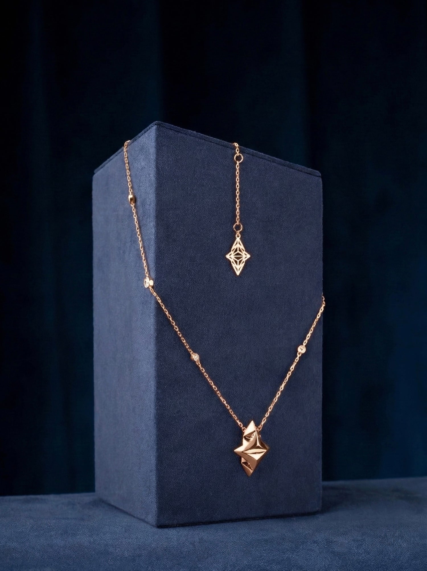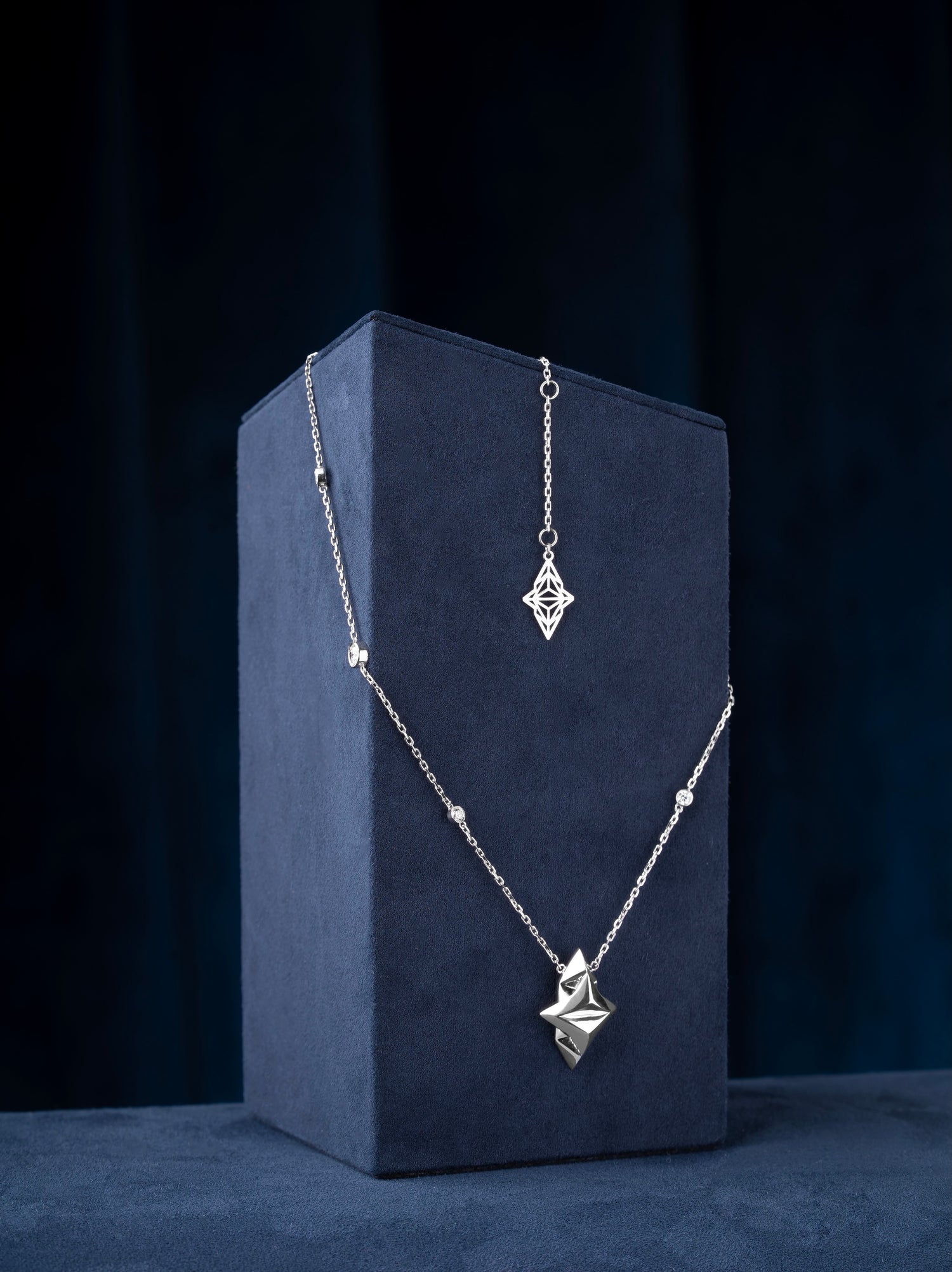 Beveled lab-grown diamonds set along the chain