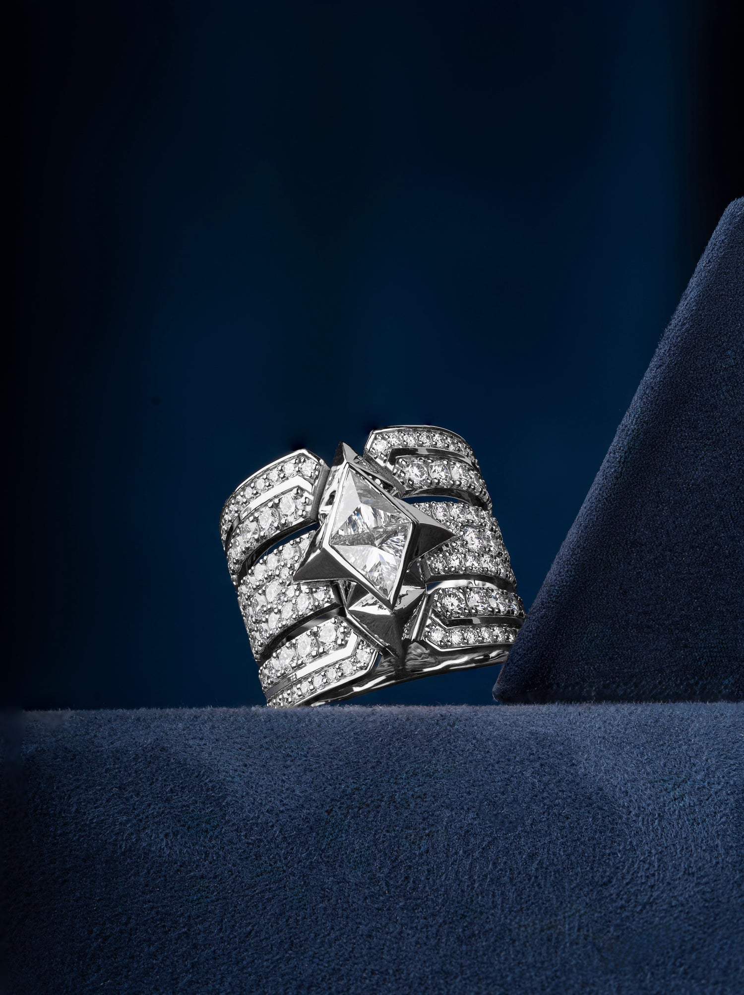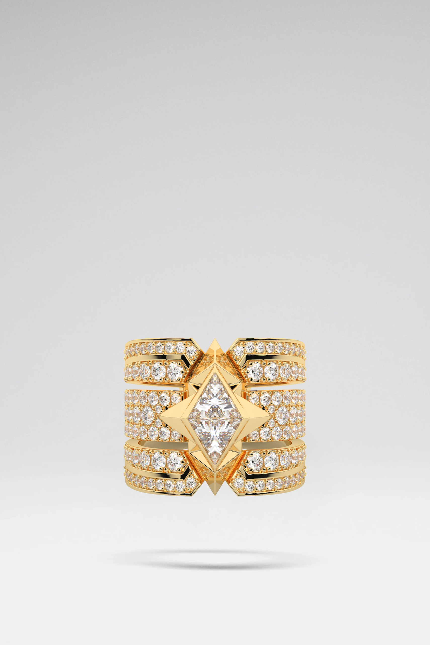 A fortress of light. Crafted in 18K gold, the Athena Solitaire Ring is defined by two striking triangle-cut lab-grown diamonds set at its center. Architectural and precise, the design reflects balance, clarity, and inner strength. Finished with Sofia Al Asfoor’s signature pyramid emblem, it embodies resilience and the enduring power of truth.