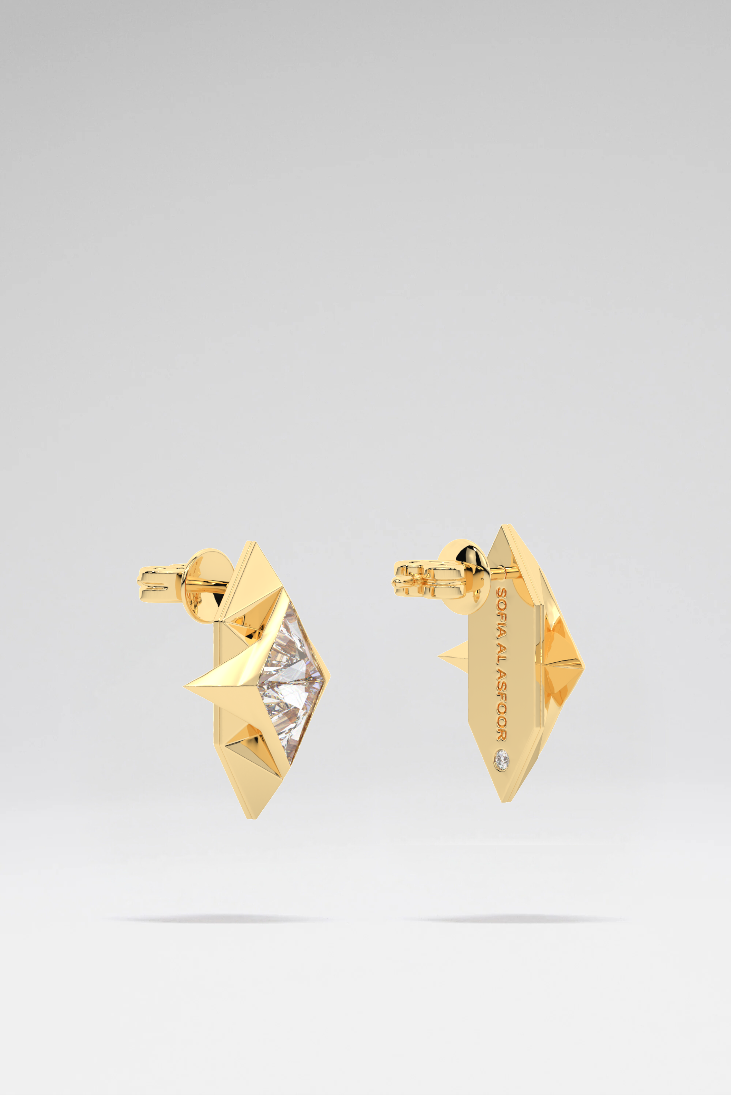 Forged in radiant 18K gold, the Athena Solitaire Stud Earrings are a powerful testament to your inner resilience and elegance. Designed by Sofia Al Asfoor, each earring showcases her iconic shield emblem, crowned with a mesmerizing trillion-cut lab diamond that captures the brilliance of the cosmos.