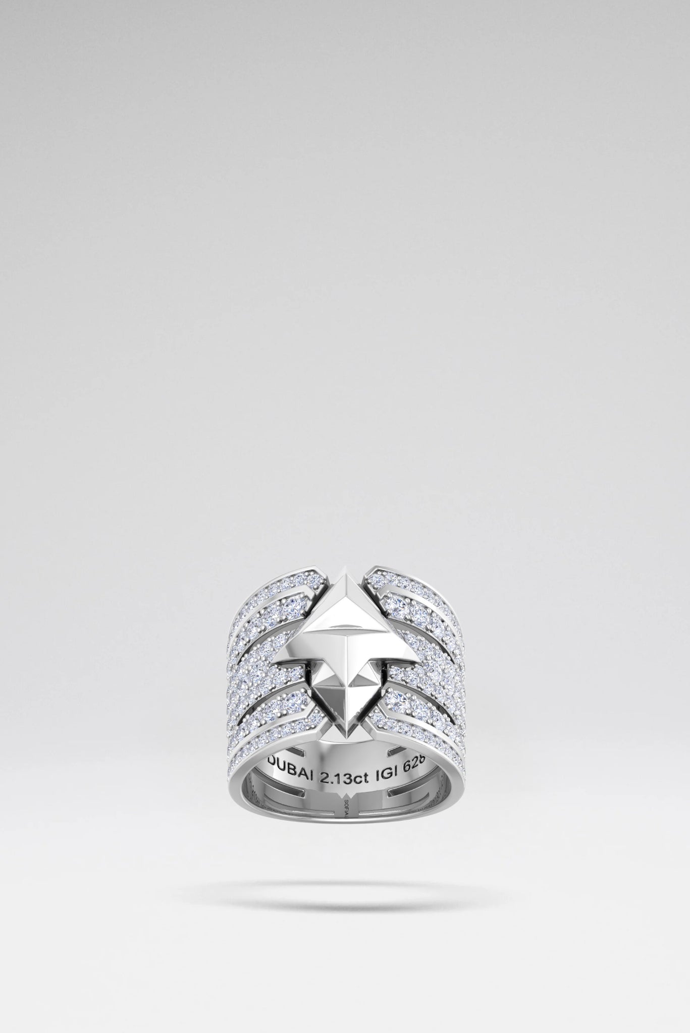 The ring is individually crafted and comes with IGI certification and a specific engraved number for authenticity.