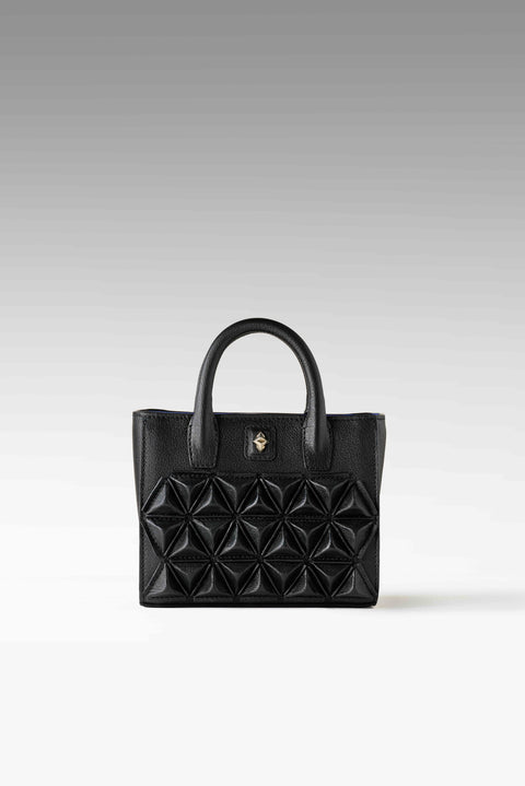 Handcrafted in Spain from premium French chèvre leather and finished with Sofia Al Asfoor’s signature blue lambskin lining, the Shield Handbag is the brand’s iconic creation — a sculptural design that defines the world of Sofia Al Asfoor. Its pyramid motif and emblem form the Shield, a symbol of protection, presence, and inner strength. Designed to empower the woman who carries it, the Shield reflects clarity, confidence, and identity. More than a handbag, it is a modern emblem of strength and personal power — crafted to accompany her through every journey.